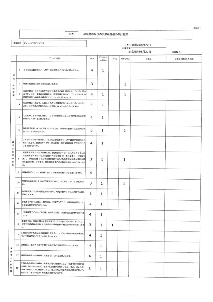 令和7年度 デイサービス にこにこ苑 保護者様からの事業所評価